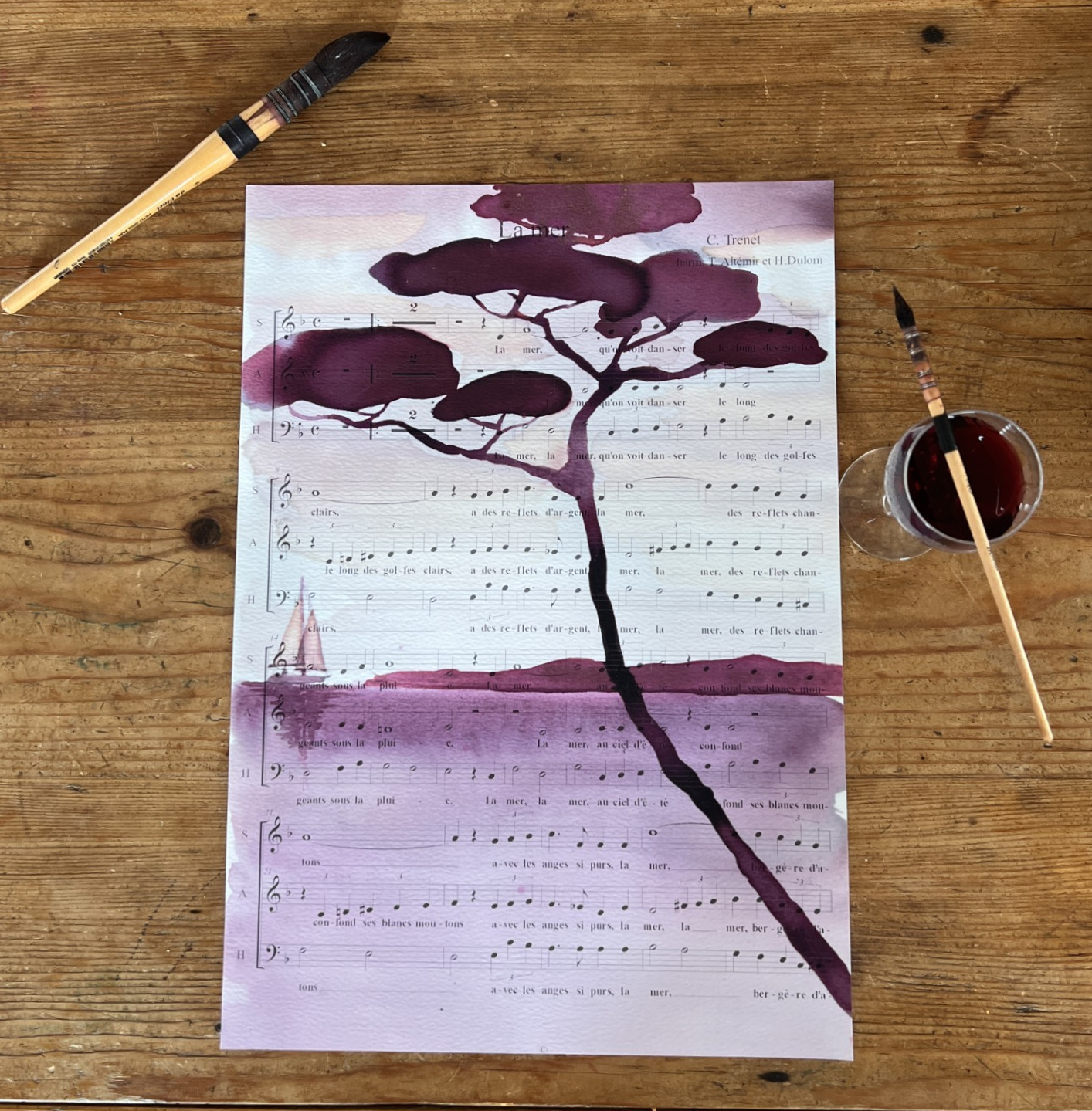 Bienvenue dans l’univers raffiné et fascinant de l’art à l’aquarelle au vin rouge, une peinture vivante et évolutive.